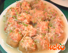推荐菜谱: 麻酱素什锦 豆茸燕窝羹 干贝绣球 香菇鱼球汤 瑶柱三色球 嫩姜鸡片